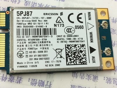 Ericsson F3607GW HS2330 DW5540 H039R 5PJ87 C680R GPS GSM WCDMA HSDPA 3G WLAN Card for DELL E6400 E6500 E6410 E6510 E4200 C680R